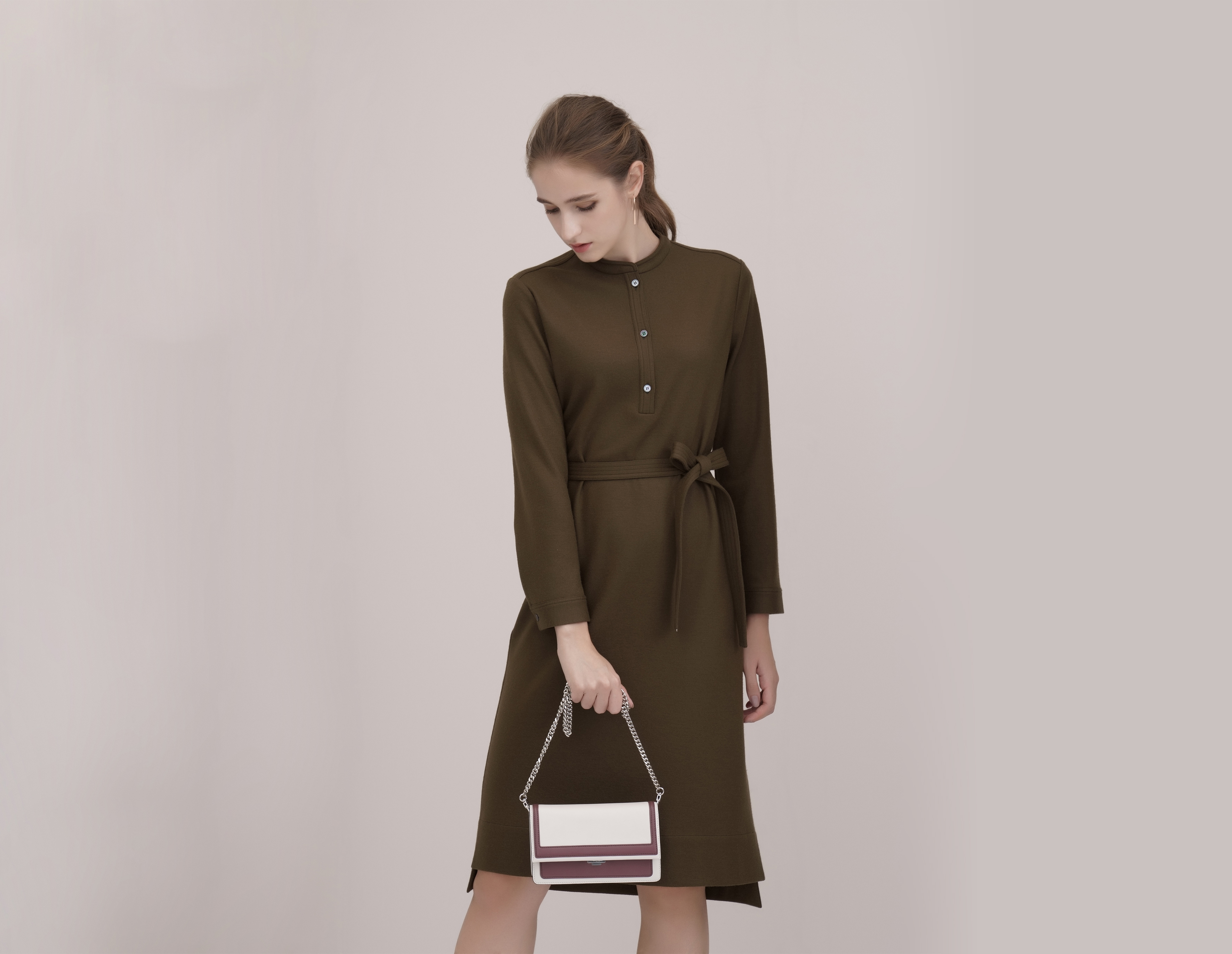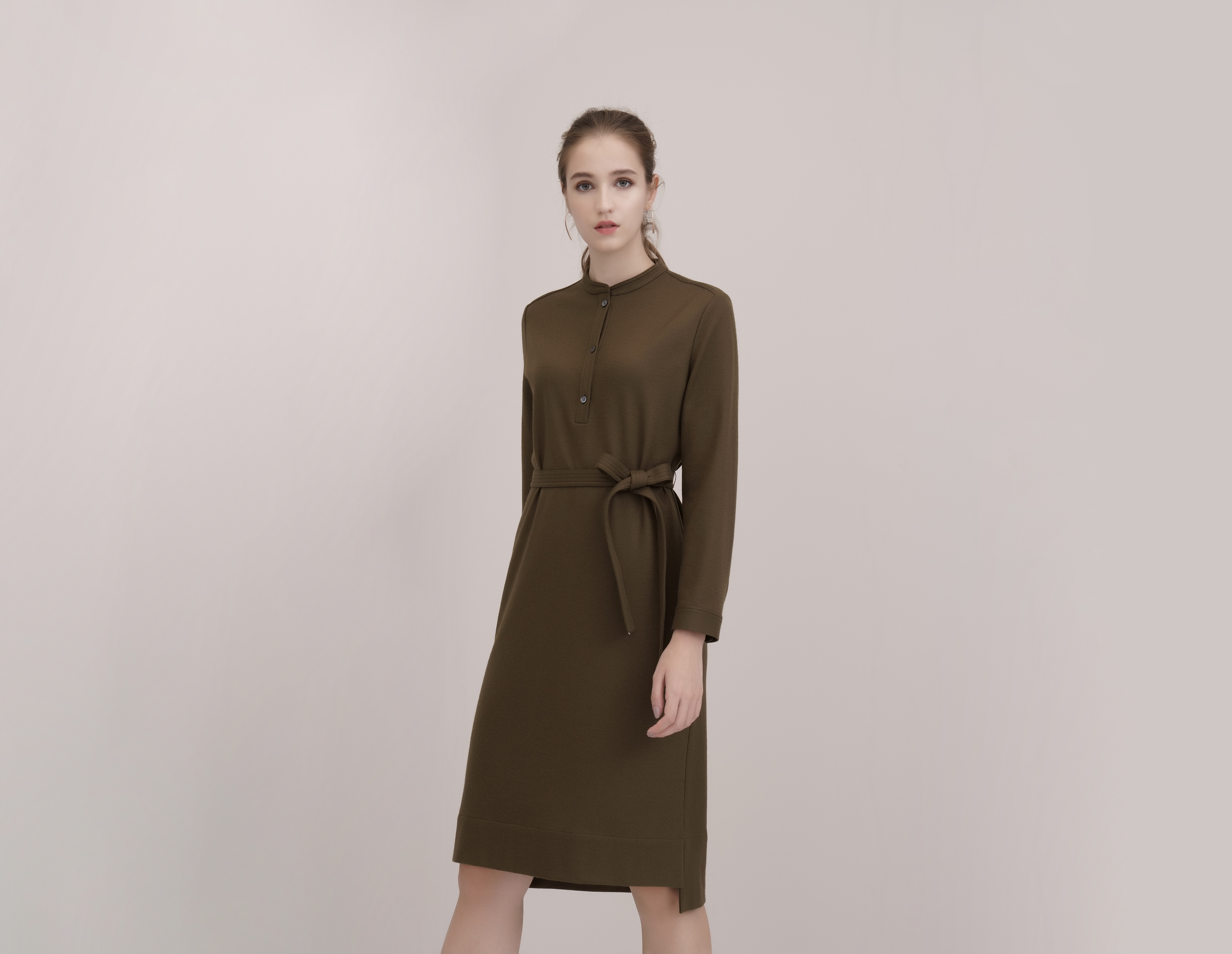 整体搭配中可以提色和减龄。希尔瑞衬衫式连衣裙的造型特点既有女人味又包容性强。