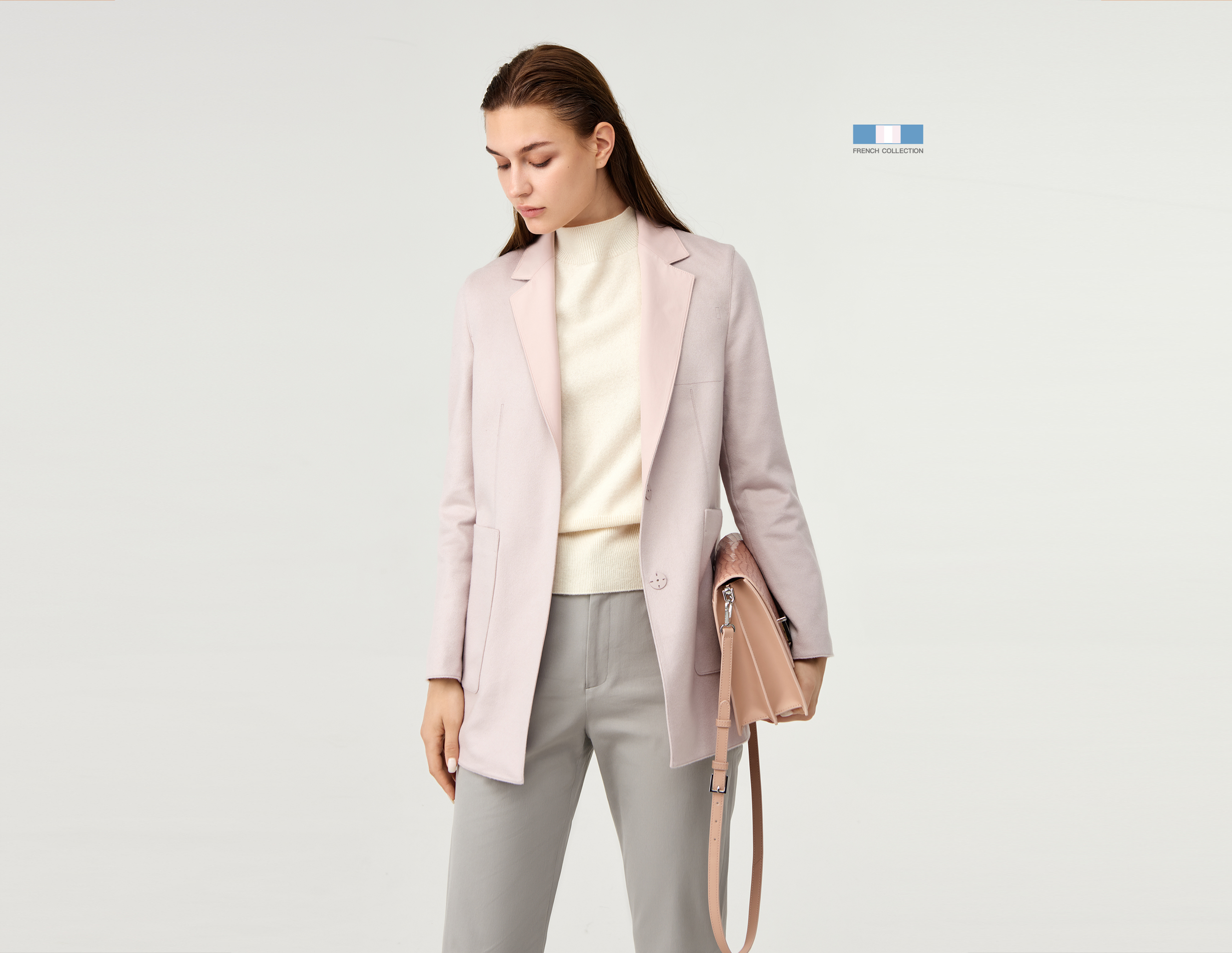 箱型阔型身形外套,增加时髦度的同时,凸显干练利落气质。双面穿工艺让整件衣服工艺感更强,两面不同面料的内外对比,视觉上更显创新设计,同时在功能上也是具备非常实用的双面穿性能。